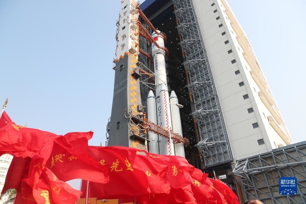 5月7日,天舟六號(hào)貨運(yùn)飛船與長(zhǎng)征七號(hào)遙七運(yùn)載火箭組合體準(zhǔn)備轉(zhuǎn)運(yùn)。新華社發(fā)(邱立軍 攝)