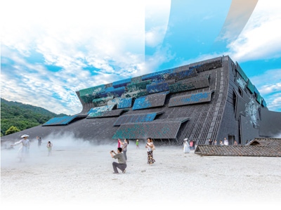 “只有峨眉山”演藝項目的室外劇場,游客正在參觀打卡。 袁學(xué)方攝(人民視覺)