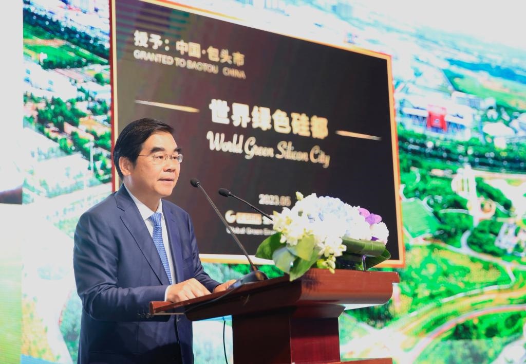 新華網(wǎng)呼和浩特5月23日電(記者賈立君、安路蒙)23日,在上海召開(kāi)的第十六屆(2023)國(guó)際太陽(yáng)能光伏與智慧能源大會(huì)上,全球綠色能源理事會(huì)授予內(nèi)蒙古自治區(qū)包頭市“世界綠色硅都”稱號(hào)。