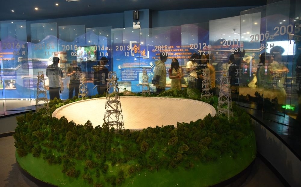 人們?cè)谫F州省平塘縣參觀“中國(guó)天眼”模型(2023年6月6日攝)。新華社記者 駱飛 攝