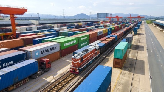 7月29日,隨著滿載110個標箱出口貨物的X8020次中歐班列從鐵路義烏西站緩緩開出前往西班牙馬德里,2023年中歐班列累計開行已達1萬列,較去年提前22天破萬列;發(fā)送貨物108.3萬標準箱,同比增長27%。