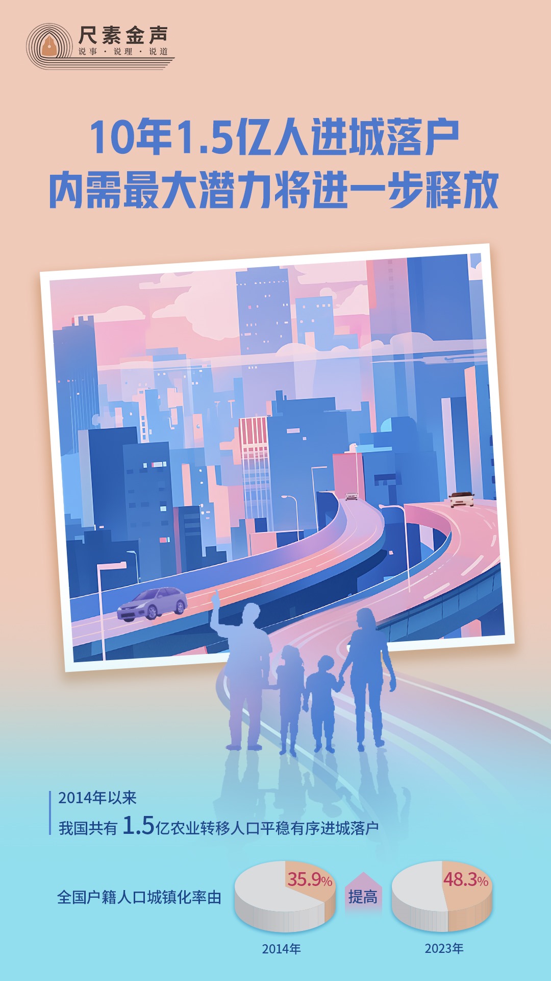 他鄉(xiāng)成故鄉(xiāng),許海麗的故事是一個(gè)縮影。數(shù)據(jù)顯示,2014年以來,我國共有1.5億農(nóng)業(yè)轉(zhuǎn)移人口平穩(wěn)有序進(jìn)城落戶,全國戶籍人口城鎮(zhèn)化率由2014年的35.9%提高到2023年的48.3%。