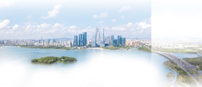 江蘇蘇州工業(yè)園區(qū)金雞湖俯瞰。