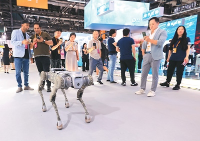 觀眾在2024年中國(guó)國(guó)際服務(wù)貿(mào)易交易會(huì)上觀看四足機(jī)器狗表演。以上圖片均由陳曉根攝(人民視覺)