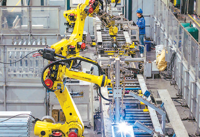 根據(jù)最新國家標準,4層及以上住宅應(yīng)設(shè)置電梯。圖為近日,在位于浙江省寧波市鄞州區(qū)東吳鎮(zhèn)的寧波宏大電梯有限公司,智能生產(chǎn)車間的機械臂在加工電梯部件。