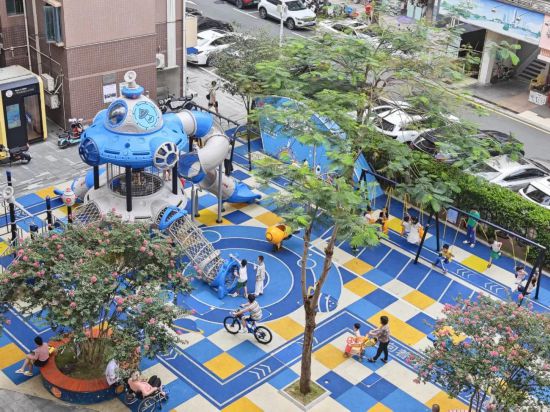 大浪街道水圍新村的適兒化改造,變村為“島”,打造成為全國(guó)首個(gè)兒童友好城中村,為居住在城中村的孩子們創(chuàng)造更多安全游戲的空間。