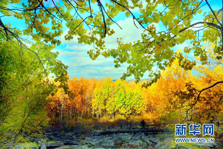 松樹(shù)林、白樺林、柞樹(shù)林和一片片混交林“染”成不同色彩,茫茫林海宛若一幅匠心獨(dú)運(yùn)的繽紛畫(huà)卷。(9月28日攝)新華網(wǎng)發(fā)(欒維敬 攝)