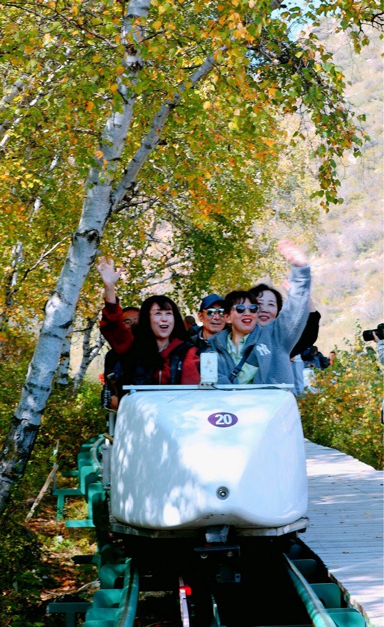 9月26日,游客乘坐小火車欣賞馬鞍山秋色