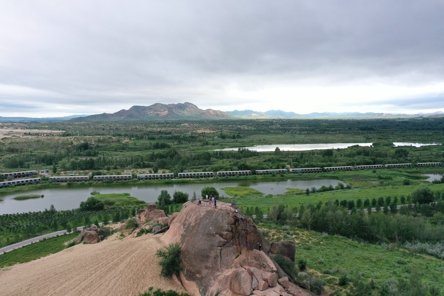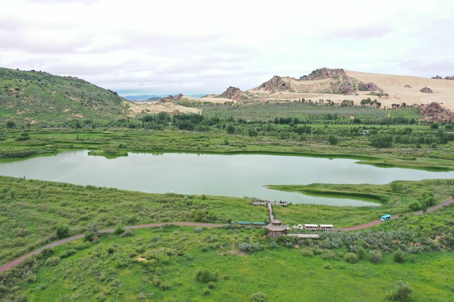 玉龍沙湖位于內蒙古赤峰市翁牛特旗,這里集沙漠、怪石、古樹、奇峰、草原、湖泊、濕地等于一身,5萬畝草原與茫茫的科爾沁沙地相連,綠洲掩映,湖光山色,形成沙海相連的奇特景觀。