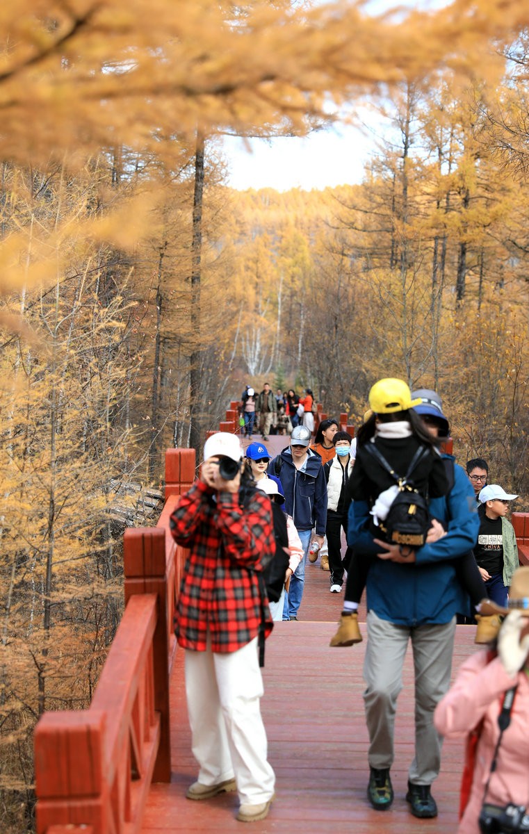 9月29日,游客在內(nèi)蒙古阿爾山國(guó)家森林公園杜鵑湖拍照打卡 北疆新聞?dòng)浾?張楊攝影