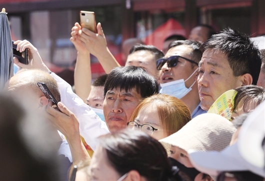 記者現(xiàn)場(chǎng)看到,家長(zhǎng)們打著陽傘、戴著口罩,陪著考生等候在校門口,有些學(xué)生的爺爺奶奶也來助陣。“別緊張,正常發(fā)揮就行,我們?cè)谕饷娴饶?。”家長(zhǎng)們疏導(dǎo)著孩子的情緒,給考生們加油。