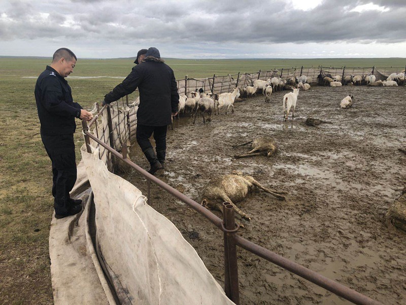 由于轄區(qū)連續(xù)降雨導(dǎo)致牧民放牧生活遇到困難,部分地區(qū)出現(xiàn)了下洪導(dǎo)致羊群不同程度受災(zāi)。當(dāng)日,派出所接到轄區(qū)牧民新某求助電話,因連續(xù)降雨導(dǎo)致羊群部分傷亡,損失較大。派出所立即組織民警前往新某放牧點(diǎn)開展救助,經(jīng)過4個(gè)多小時(shí)的努力,終于成功搭建新的避雨羊圈,并將70余只成羊、30余只羊羔轉(zhuǎn)移到安全地段,及時(shí)為牧民挽回了經(jīng)濟(jì)損失近10萬元。(特日格勒)