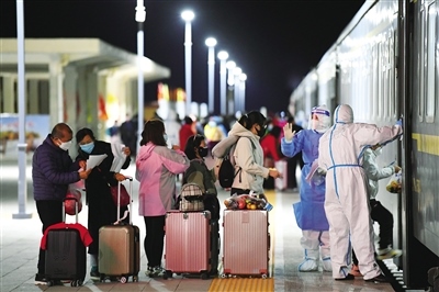 10月30日晚,又一批符合條件的滯留游客搭乘火車離開(kāi)額濟(jì)納旗轉(zhuǎn)運(yùn)至低風(fēng)險(xiǎn)地區(qū)。記者 王磊 見(jiàn)習(xí)記者 王坤 攝