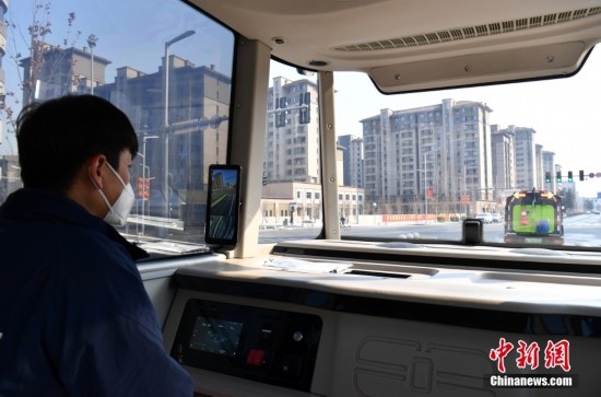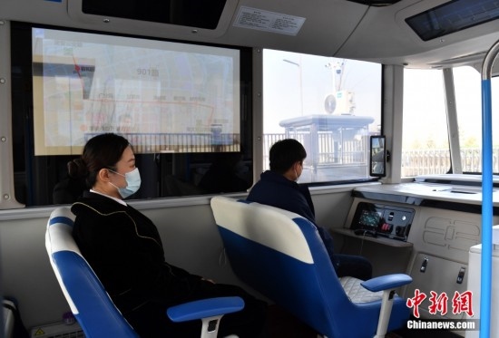 2月22日,智能網(wǎng)聯(lián)巴士901線測(cè)試車輛??抗徽九_(tái)。雄安新區(qū)的智能網(wǎng)聯(lián)巴士近期正在進(jìn)行投入運(yùn)營(yíng)前的道路測(cè)試,該巴士配備了超高感度攝像頭、超聲波雷達(dá)、激光雷達(dá)、毫米波雷達(dá)等感知設(shè)備,組成了車輛的“眼睛”。車輛可自主識(shí)別紅綠燈、道路提示牌和車道標(biāo)線等,做出跟車、超車、停車等動(dòng)作。中新社記者 韓冰 攝
