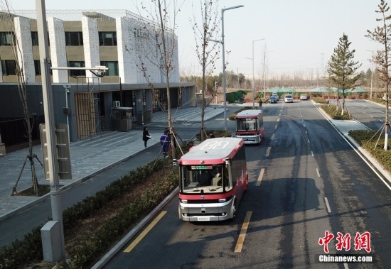 2月22日,智能網(wǎng)聯(lián)巴士901線測(cè)試車輛與普通城市公交車駛出公交站臺(tái)。雄安新區(qū)的智能網(wǎng)聯(lián)巴士近期正在進(jìn)行投入運(yùn)營(yíng)前的道路測(cè)試,該巴士配備了超高感度攝像頭、超聲波雷達(dá)、激光雷達(dá)、毫米波雷達(dá)等感知設(shè)備,組成了車輛的“眼睛”。車輛可自主識(shí)別紅綠燈、道路提示牌和車道標(biāo)線等,做出跟車、超車、停車等動(dòng)作。中新社記者 韓冰 攝