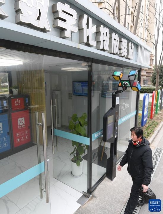 2月22日,在八里店鎮(zhèn)西湖漾社區(qū)垃圾分類(lèi)數(shù)字化投放驛站,一位居民前來(lái)投放生活垃圾。