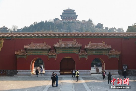 2月22日,站在景山上眺望壽皇殿建筑群。景山公園北部的壽皇殿建筑群始建于明代,總占地面積約21256平方米,總建(構(gòu))筑面積3797.68平方米,現(xiàn)在的壽皇殿建筑群是清乾隆十四年(1749年)修建,是北京中軸線上古建筑群中除故宮之外的第二大建筑群,也是景山的核心區(qū)域和北京中軸線的重要組成部分。中新社記者 易海菲 攝