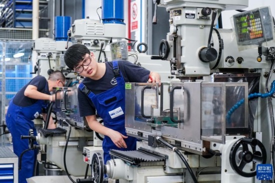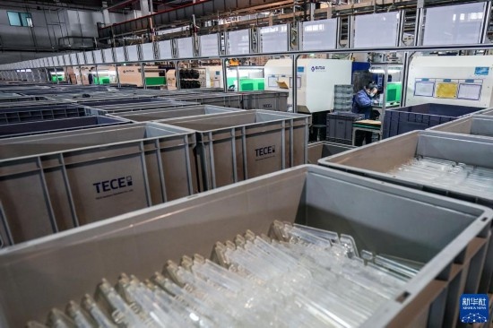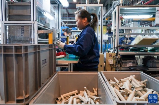工人在位于太倉市高新區(qū)的帝希潔具系統(tǒng)(蘇州)有限公司生產(chǎn)車間內進行加工作業(yè)(3月16日攝)。