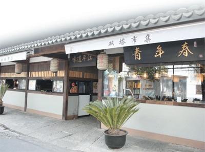 雙塔市集最有特點(diǎn)的,當(dāng)數(shù)生鮮區(qū)與小吃區(qū)的互動(dòng)。“游客想品嘗當(dāng)季小吃,我們就從生鮮區(qū)直接采購(gòu)新鮮蔬菜、鮮活水產(chǎn)?!闭f(shuō)話間,一家小吃店店主王峰給楊瀅與她的伙伴端出韭菜炒螺螄、香椿炒雞蛋、薺菜小餛飩,“都是新鮮的當(dāng)季菜。我們生意最火的時(shí)候要數(shù)10月份大閘蟹上市,客人自己到水產(chǎn)區(qū)挑選,再拿回店里加工,水產(chǎn)攤每天要給我們捆好幾百只大閘蟹?!?/p>