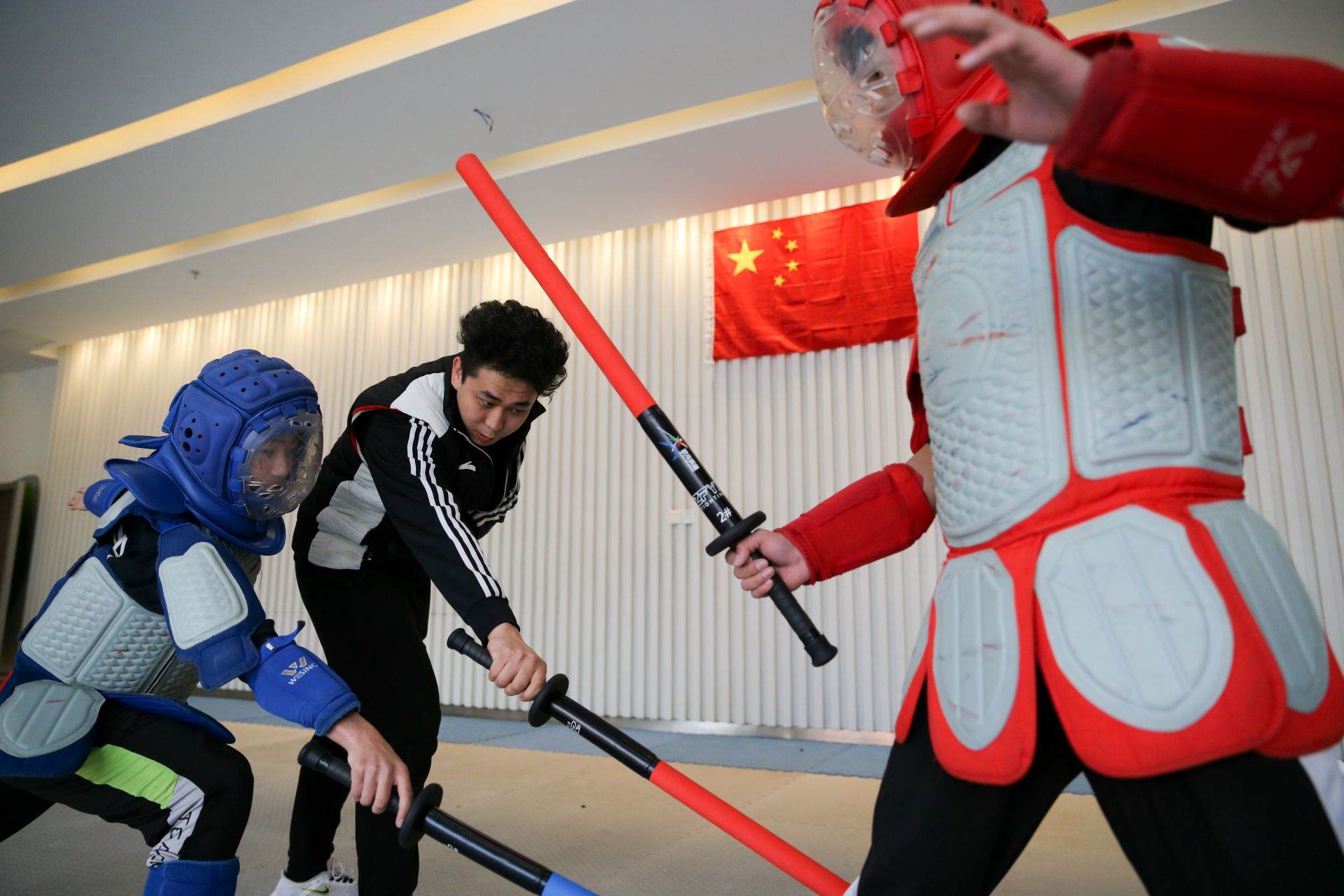 據(jù)了解,2021年,國家體育總局武術(shù)管理中心推出了試行的武術(shù)兵道(短兵)競賽規(guī)則,武術(shù)兵道作為與武術(shù)套路、武術(shù)散打并列的競技武術(shù)重要內(nèi)容在全國普及推廣。同一年,剛剛從北京體育大學(xué)武術(shù)專業(yè)畢業(yè)的張宇來到呼和浩特,參與了內(nèi)蒙古第一批武術(shù)兵道運(yùn)動員的選拔?!耙?yàn)槭切马?xiàng)目,大部分隊(duì)員都是跨項(xiàng)選拔,主要關(guān)注他們的身體靈活性和臂展。”張宇說。