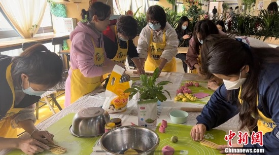 “智慧媽媽團”成員們在做點心、話家常。中新網(wǎng)記者 劉湃 攝