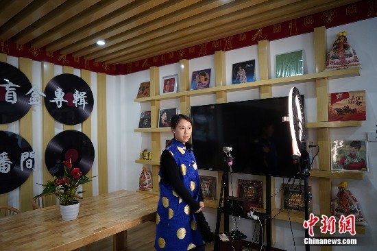 商戶正在直播帶貨。中新網(wǎng)記者 劉湃 攝