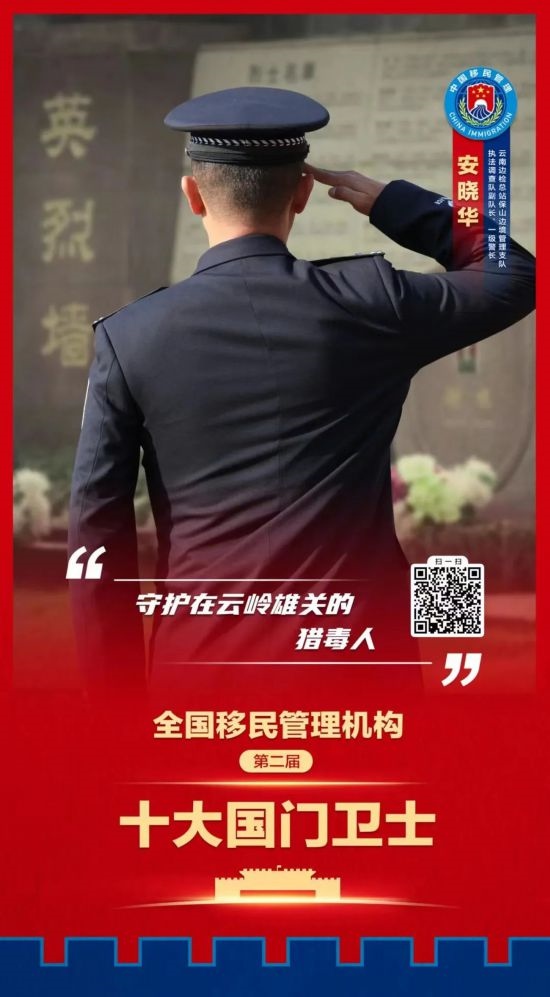 10名來自邊防檢查和邊境管理一線的移民管理警察被表彰為全國(guó)移民管理機(jī)構(gòu)第二屆十大國(guó)門衛(wèi)士,并榮記個(gè)人一等功。他們分別是: