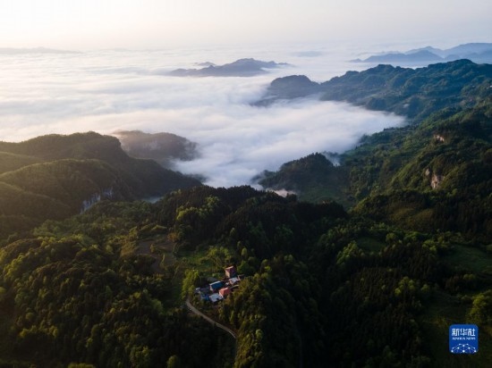 這是4月19日拍攝的金佛山云海景觀(無人機(jī)照片)。
