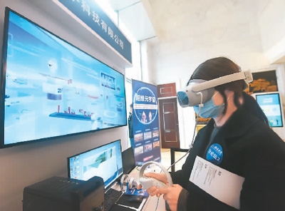 3月16日,在浙江省杭州市2023西溪大會(huì)·全球數(shù)字科技峰會(huì)上,虛擬現(xiàn)實(shí)產(chǎn)品設(shè)計(jì)師利用VR技術(shù)探索“超維元宇宙”。龍 巍攝(人民視覺)