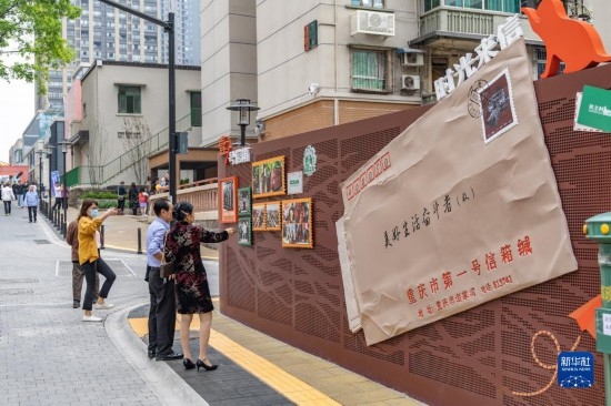 4月28日,重慶市九龍坡區(qū)謝家灣街道民主村片區(qū)城市更新項(xiàng)目(一期)正式竣工亮相,市民游客前來打卡。