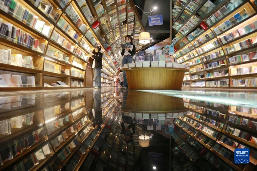 5月2日,讀者在重慶市中迪廣場鐘書閣閱讀書籍。