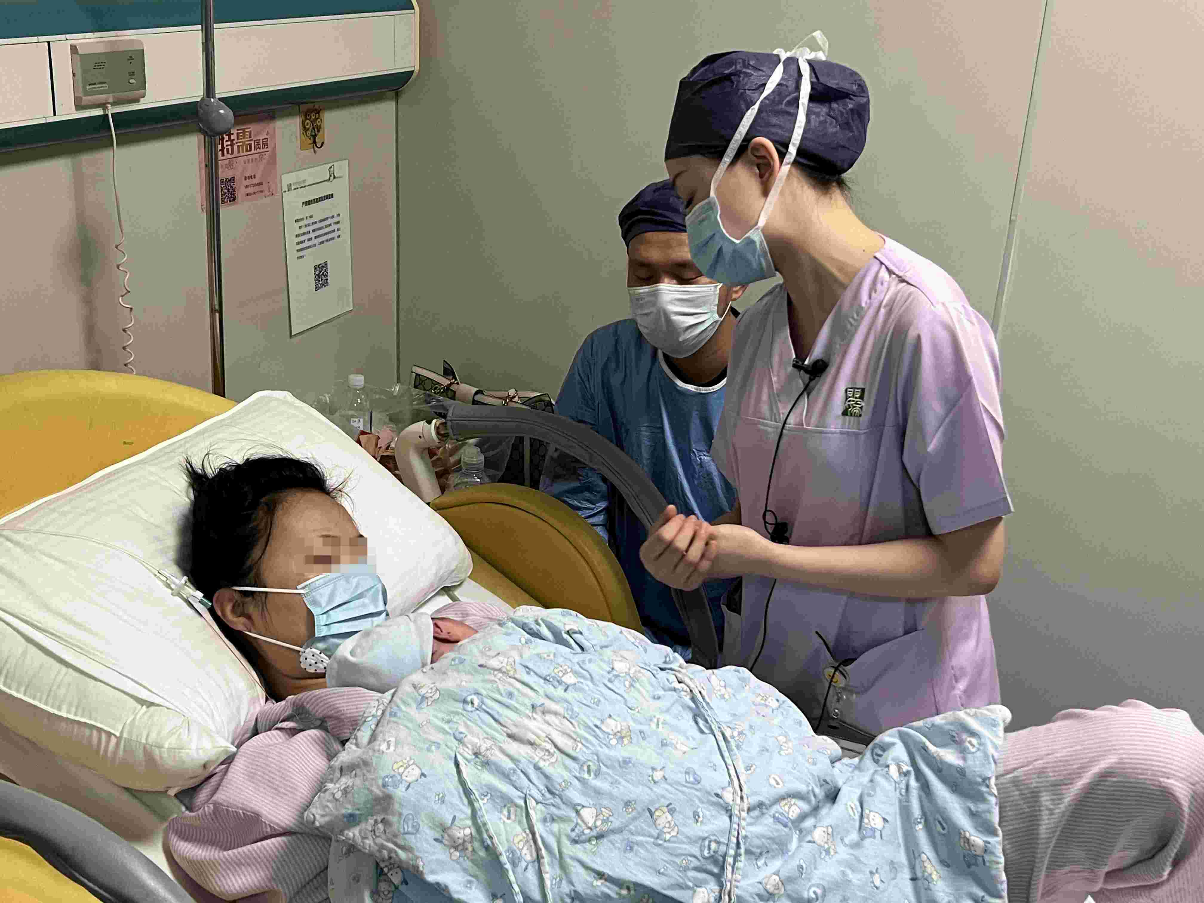 “入職后我通過科室輪轉(zhuǎn)學(xué)習(xí),歷經(jīng)2年規(guī)范化培訓(xùn),最終于2021年定科,到了產(chǎn)房工作,一開始從導(dǎo)樂開始學(xué)起,導(dǎo)樂的工作主要是陪伴產(chǎn)婦分娩。起初跟著有經(jīng)驗(yàn)的護(hù)理人員一起,我們會(huì)給準(zhǔn)媽媽介紹分娩可能會(huì)面對(duì)什么情況,幫助她們消除對(duì)分娩的恐懼,還會(huì)教產(chǎn)婦如何通過有節(jié)奏的呼吸來止痛;在正式分娩時(shí),導(dǎo)樂也會(huì)指導(dǎo)產(chǎn)婦如何用力,從心理和生理上給予全方面的支持?!眳庆o說,熟悉了導(dǎo)樂工作后,接著她去了待產(chǎn)室工作,重點(diǎn)掌握產(chǎn)程情況,密切關(guān)注產(chǎn)婦的生命體征,此后又開始學(xué)習(xí)如何接生。