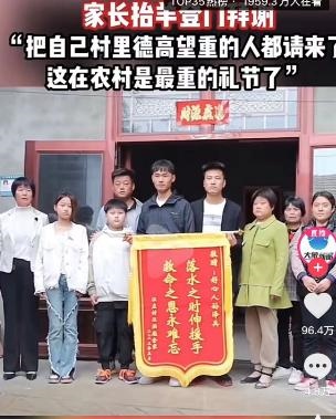 河南濮陽,一小伙跳進(jìn)黃河救出小孩,被救孩子家長抬羊謝恩。