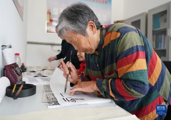 5月9日,老人在北京市平谷區(qū)西樊各莊村“養(yǎng)老驛站”練習(xí)書(shū)法。