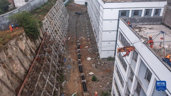 六盤水消防救援支隊隊員在打鉆孔(5月11日攝)。