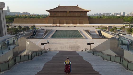 一下火車,乘坐電動(dòng)扶梯從西安站北廣場(chǎng)出站,氣勢(shì)雄渾的大明宮國家遺址公園丹鳳門便出現(xiàn)在眼前。