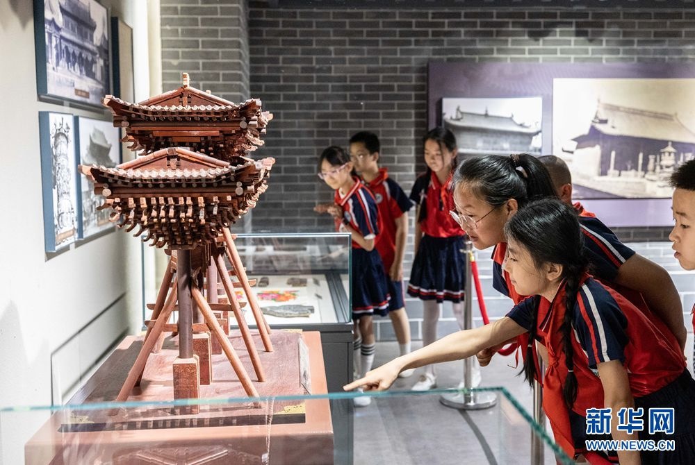 5月17日,呼和浩特市玉泉區(qū)南茶坊小學(xué)學(xué)生在歸化城展示館參觀。新華網(wǎng)發(fā)(丁根厚攝)