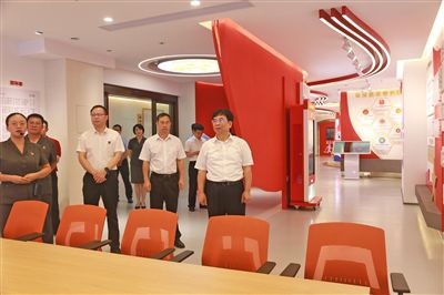 廣西高院黨組書記、院長黃海龍(右一)在桂林中院黨建文化活動(dòng)中心調(diào)研。