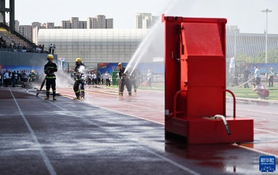 6月2日,微型消防站代表參加水槍打靶消防業(yè)務技能比武。