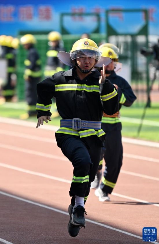 6月2日,微型消防站代表參加原地著裝加佩戴空氣呼吸器消防業(yè)務技能比武。