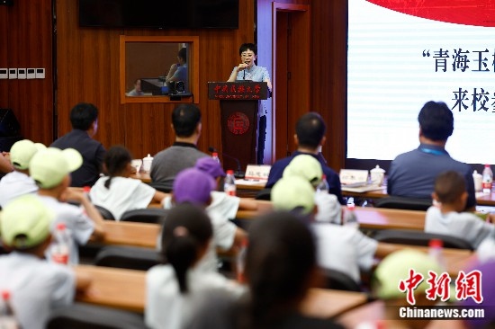 當(dāng)天,孩子們?cè)谥醒朊褡宕髮W(xué)與師生進(jìn)行了分享交流。中央民族大學(xué)教授蒙曼以格薩爾王、通天河、賽馬會(huì)為話題,迅速拉近了和孩子們的距離。