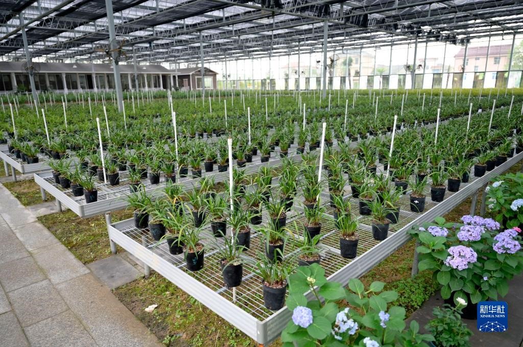 6月8日在浙江省紹興市柯橋區(qū)漓渚鎮(zhèn)棠棣村拍攝的蘭花數(shù)字工廠一景。新華社記者 才揚 攝