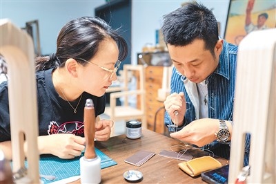 作為今年上海市為民辦實(shí)事項(xiàng)目“社會(huì)大美育課堂”的重要組成部分,今年上海市民藝術(shù)夜校春季班共開設(shè)教學(xué)點(diǎn)位123個(gè)、課程278門、招收學(xué)員6507人。夜校學(xué)習(xí)內(nèi)容包括傳統(tǒng)文化、時(shí)尚文化、非遺技藝、江南文化以及區(qū)域文化等。圖為5月8日,上海市寶山區(qū)淞南鎮(zhèn)社區(qū)文化活動(dòng)中心,老師(右)正在指導(dǎo)學(xué)生皮具制作技巧。王 初攝(人民圖片)
