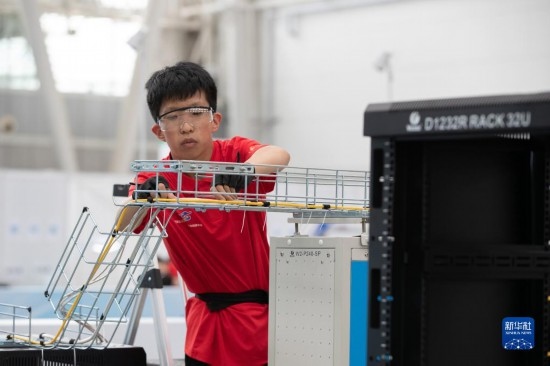 6月6日,選手在進(jìn)行信息網(wǎng)絡(luò)布線(xiàn)項(xiàng)目比賽。