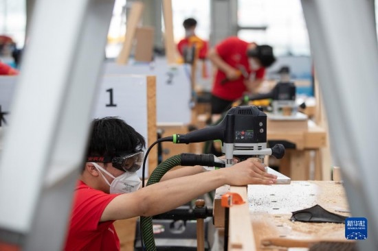 6月6日,選手在進(jìn)行木工項(xiàng)目比賽。