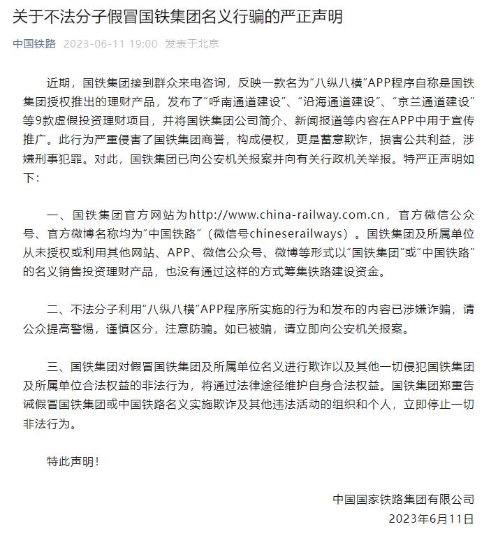 ·APP程序假冒國鐵集團(tuán)名義行騙,國鐵集團(tuán):已報(bào)警。