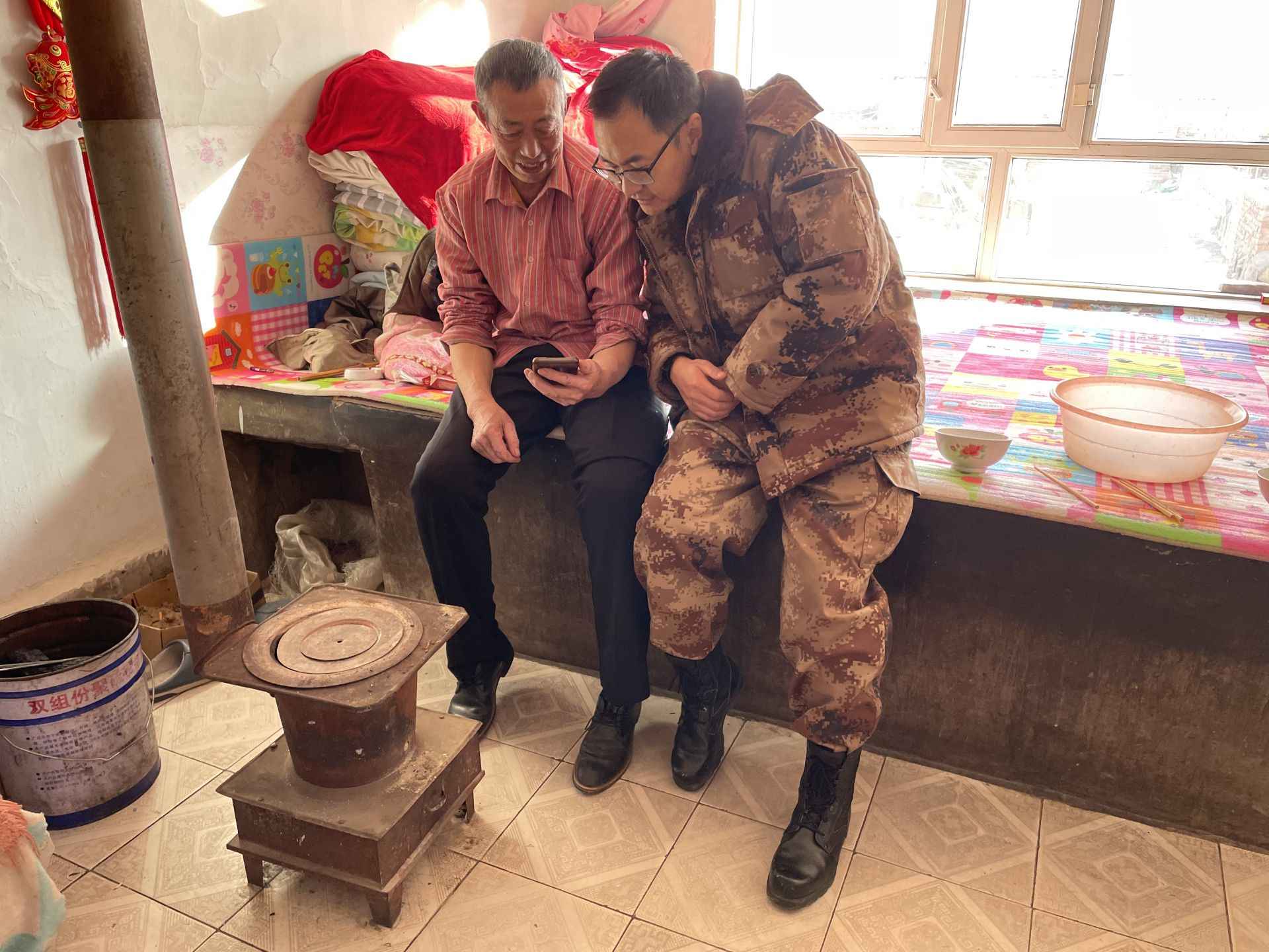 村民高興地向閻書(shū)記展示在家里撥打電話