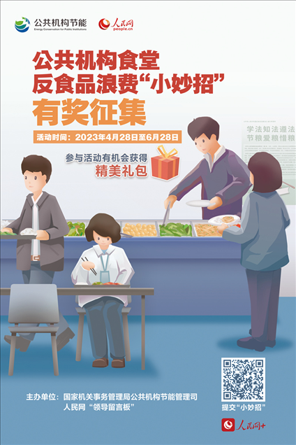 “推出小份菜”“飯菜稱重計價”“借助大數據合理備餐”……公共機構食堂反食品浪費,你還有什么“小妙招”?4月28日起,國家機關事務管理局公共機構節(jié)能管理司、人民網通過“領導留言板”聯(lián)合推出“公共機構食堂反食品浪費‘小妙招’有獎征集”活動,面向全社會征集黨政機關、學校、醫(yī)院等公共機構食堂反食品浪費的妙招、實招、硬招?;顒油瞥龊螅鞯厝罕姺e極建言獻策,一起來看看吧!