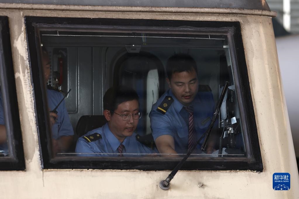 6月15日,滬寧沿江高鐵檢測(cè)列車的工作人員在做發(fā)車前的準(zhǔn)備。