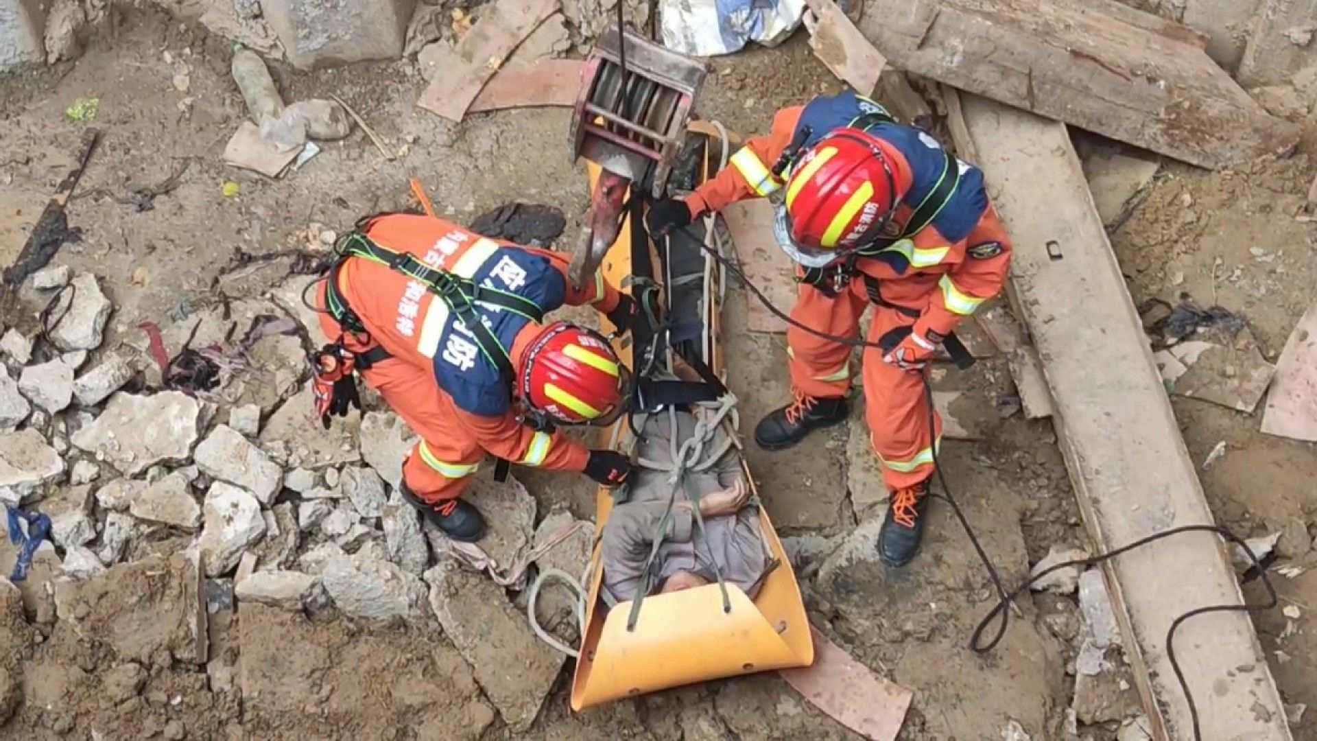 現(xiàn)場指揮員立即組織救援人員穿戴好防護(hù)裝備,攜帶多功能擔(dān)架并利用附近施工吊車下降到被困人員位置,針對被困人員受傷部位做好保護(hù)措施后,將被困男子轉(zhuǎn)移至擔(dān)架上。